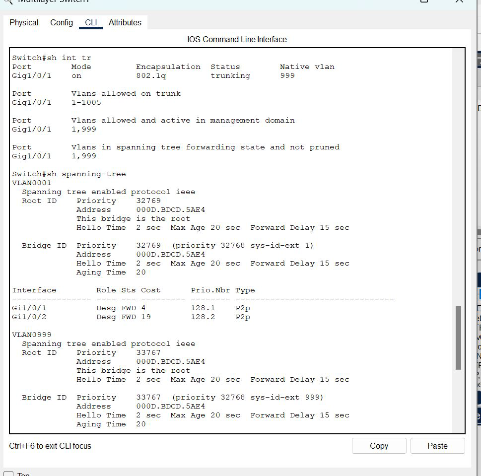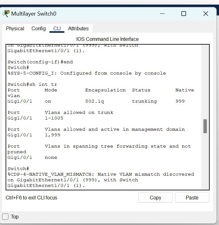 Switch(config-if)#switchport trunk native vlan 999