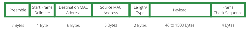 - 有效载荷实际上,需要从发送方发送到接收方的数据,以及必要时所需的填充位。该字段的大小范围为46到1500字节。