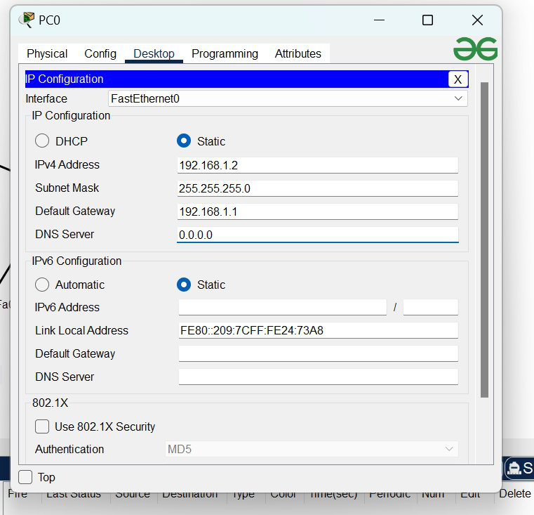 | 192.168.1.2 | 192.168.1.1 | 255.255.255.0 |