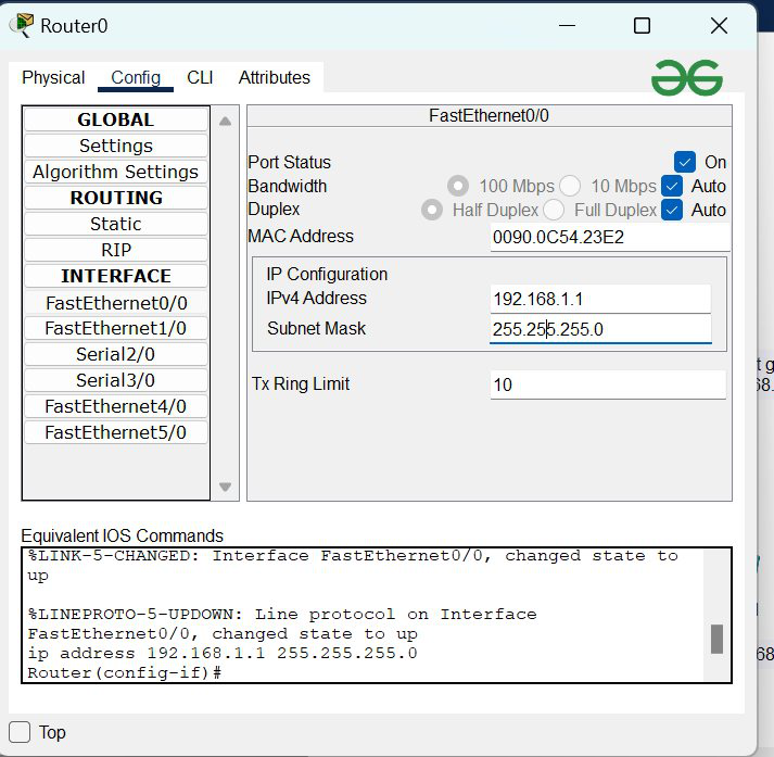 | FastEthernet0/0 | 192.168.1.1 | 255.255.255.0 |