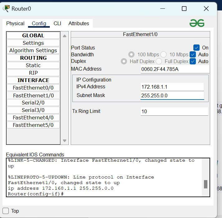 | FastEthernet1/0 | 172.168.1.1 | 255.255.0.0 |