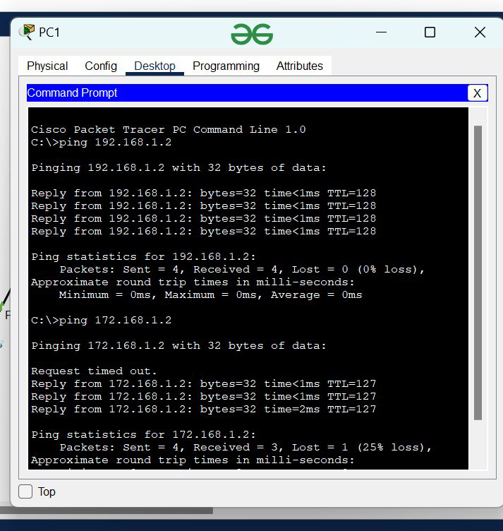 为了验证连接是否正常,我们将使用“ping IP地址”命令来检测LAN1中的任何主机。