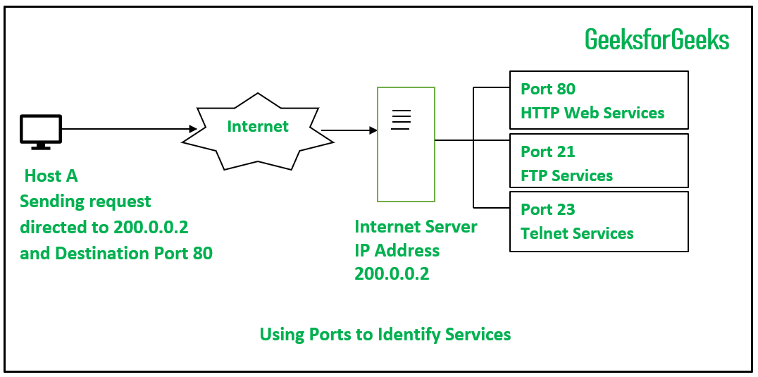 在上面的示例图中,Host A通过指定端口80来向互联网服务器发送请求,这表明该请求是HTTP请求。如果目标端口被设置为21,那么这种请求就属于FTP请求了。
