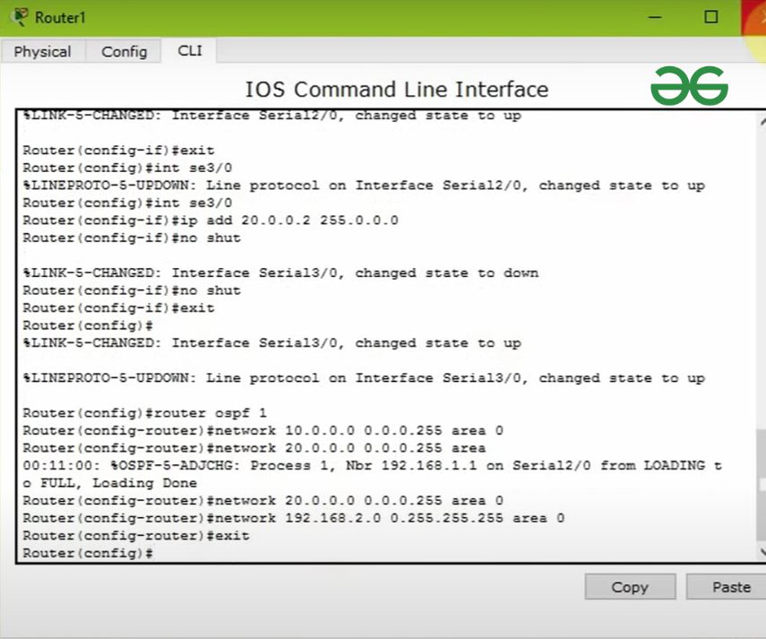 Router(config-router)#network 20.0.0.0 0.0.0.255 area 0