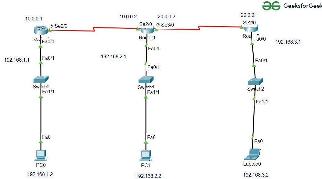 - 如我们所见,我们已经为接口1(Router0)配置了Host 1,也就是PC0,以及与之相关的串行端口。